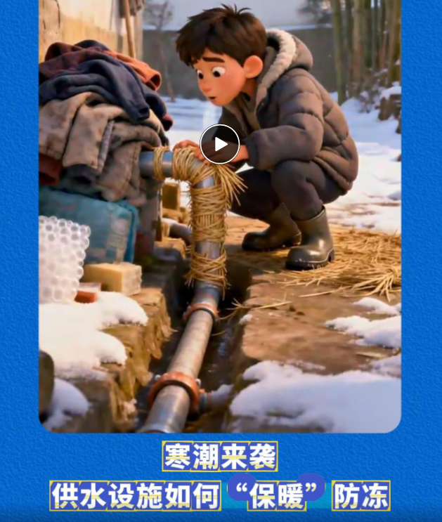 小贴士来啦!对室外水管、水表、阀门等设施,可用稻草、旧衣物、塑料、泡沫等材料进行包裹保温。夜晚气温低,可将水龙头稍稍拧开,让水流呈细线状,避免管内静止水结冰,记得用容器接水,避免浪费。要关好门窗,确保室内温度高于0℃,防止暴露在内的水管受冻。若长时间外出,可提前关闭水表阀门,排空管道存水,避免冻胀损坏。